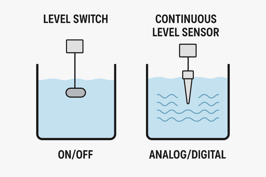 Monitoring and controlling material levels in tanks, silos, or process vessels is essential for safe and efficient operation. Two common technologies used in industrial applications are Level Switches and Continuous Level Sensors. While both serve to detect or measure material levels, they function differently depending on the process requirements.