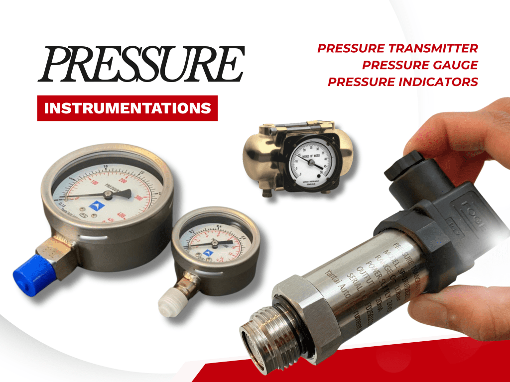 Complete range of pressure instruments including pressure gauges, pressure transmitters, and differential pressure transmitters. Our instruments are designed for accurate, reliable performance in industrial and process applications.